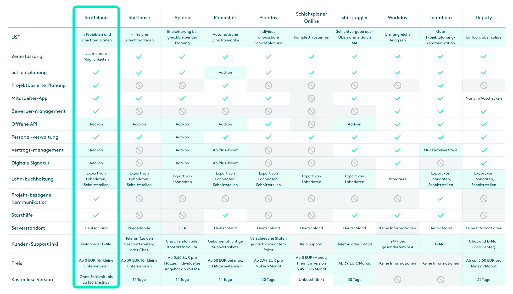 Tabelle: Personaleinsatzplanung 2026 - der grosse Software-Vergleich
